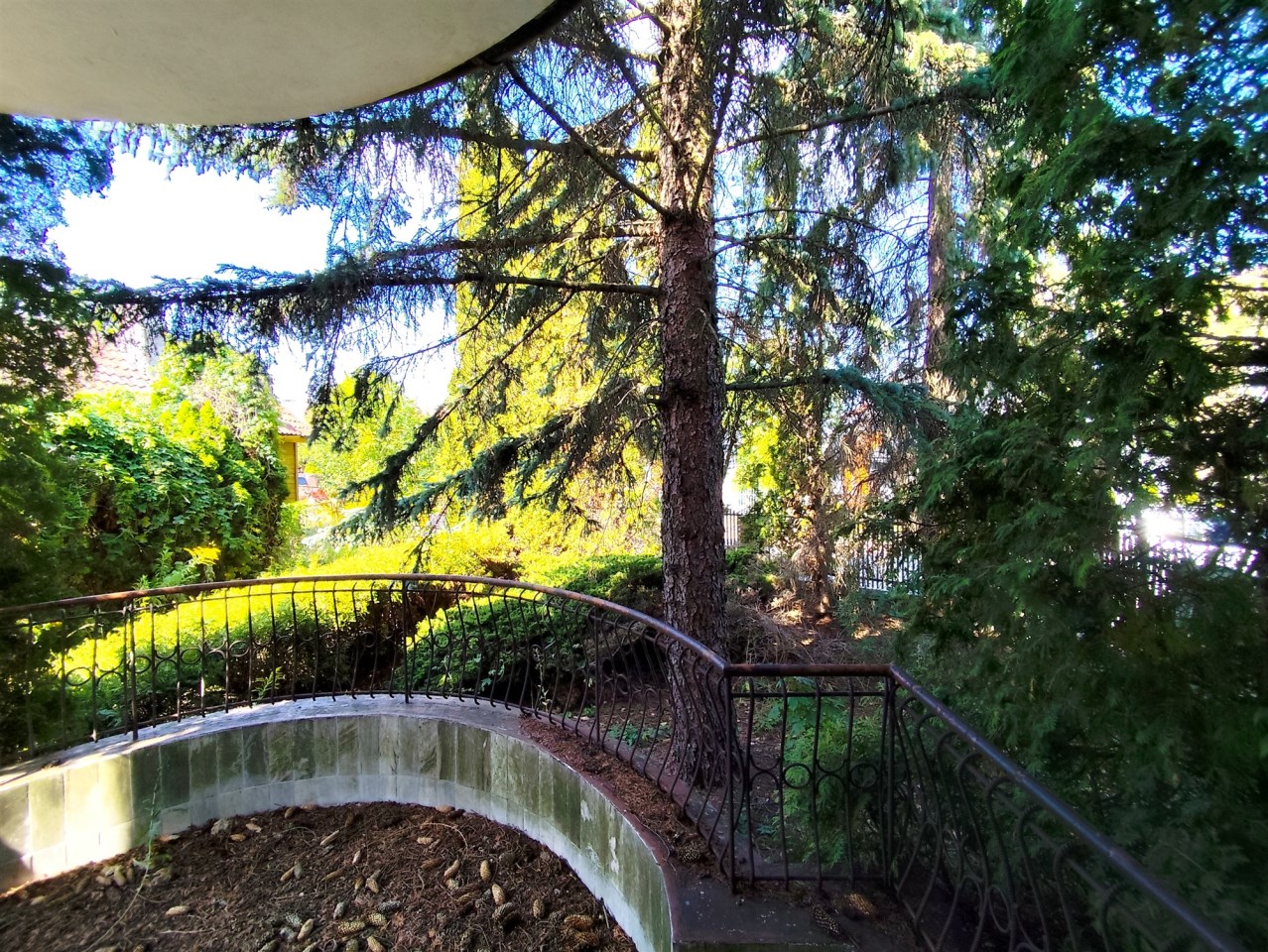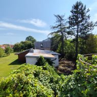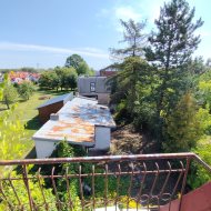 Duża, płaska działka o powierzchni 614 m² to prawdziwa oaza spokoju. Rośnie tu wiele pięknych drzew i krzewów, które tworzą naturalną, prywatną scenerię widoczną z każdego poziomu domu – w tym z 3 balkonów i 2 tarasów.