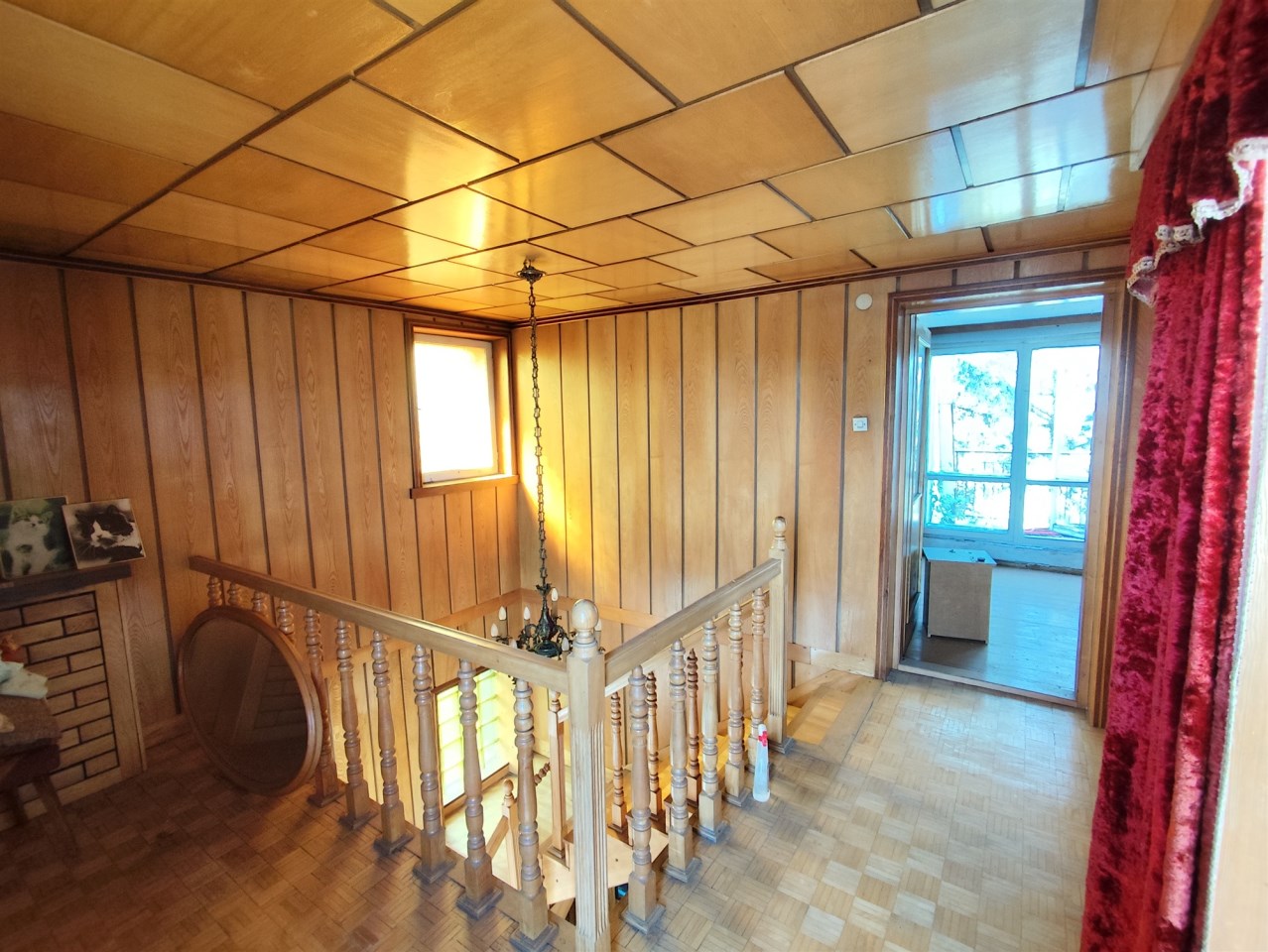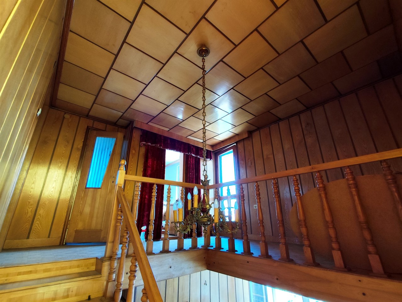 Do wyższych kondygnacji prowadzą solidne, drewniane schody.