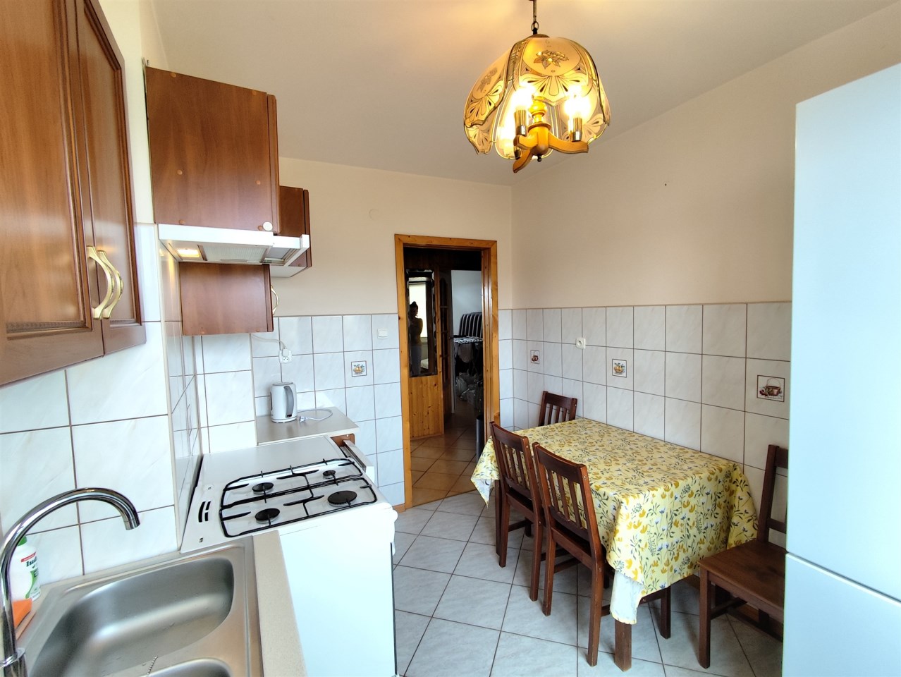 Mieszkanie składa się z salonu 25m2 z wyjściem na duży balkon, 2 sypialni 12m2 i 8m2, oddzielnej ustawnej kuchni oraz łazienki z wc ( kabina prysznicowa, pralka). Kuchnia zabudowana, zmywarka, kuchenka gazowa ( gaz na butlę gazową). Do mieszkania przynależy garaż w budynku wolnostojącym oraz ogródek z miejscem na grilla oraz jeszcze dodatkowa działeczka rolna na której można sadzić warzywa i owoce.