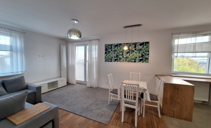 Apartament urządzony został ze smakiem – nowocześnie, a zarazem przytulnie. Starannie dobrane meble i wysokiej jakości wykończenie wnętrz gwarantują wygodę codziennego życia. Na powierzchnię ok. 50 m² składają się: